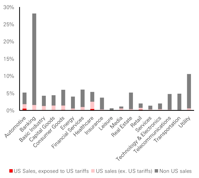 Figure 2: EUR HY - Breakdown by sector, sales exposures to US tariffs