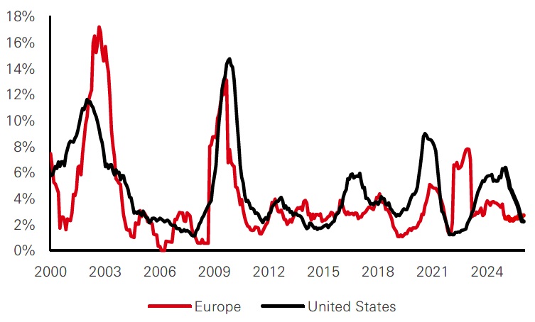- European corporate credit markets are entering this period of geopolitical uncertainty with robust fundamentals. Companies have maintained steady leverage levels, resilient profitability, and strong cash buffers. Default rates are expected to remain between 2 per cent and 3 per cent, reflecting a healthy credit environment despite external pressures